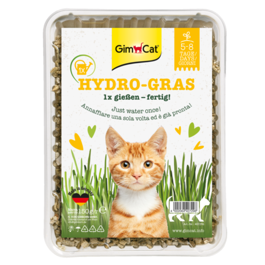 GIMCAT Hydro-Grass е иновационно решение за отглеждане на котешка трева, съдържащо хидрогел за бързо и лесно покълване. Тази трева е специално разработена, за да осигури на вашата котка свежи, питателни стръкове, които стимулират дъвченето и играта, подпомагат храносмилането и допринасят за премахването на космени топки.