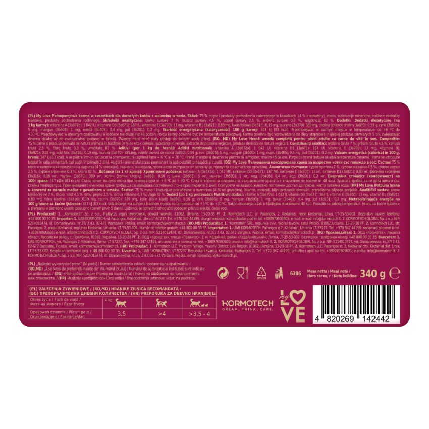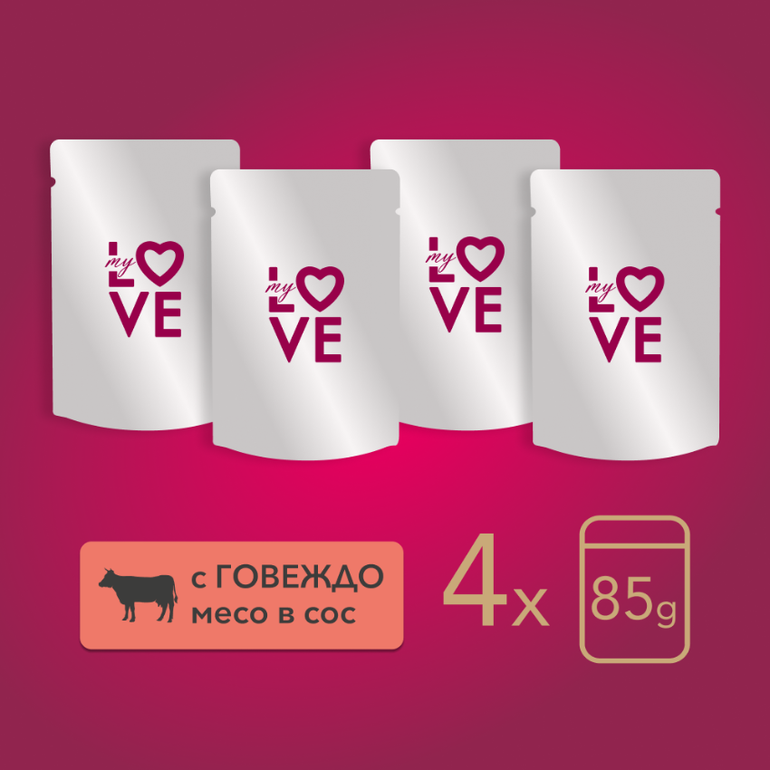 Пауч за котки My Love Adult cat with beef in gravy с говеждо...