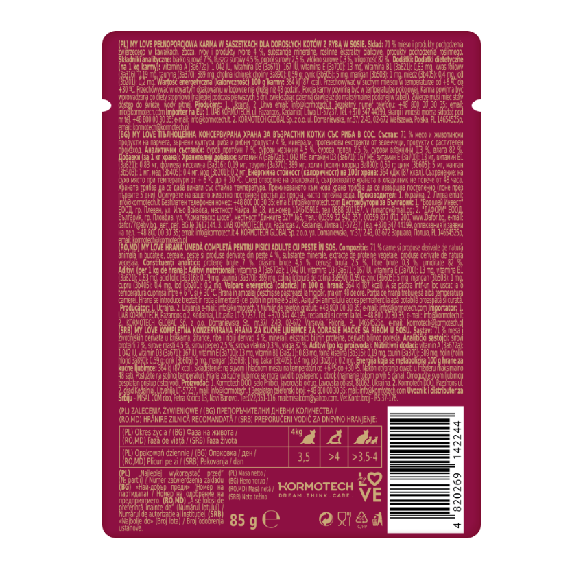 Пауч за котки My Love Adult cats with fish in sauce 4 броя...
