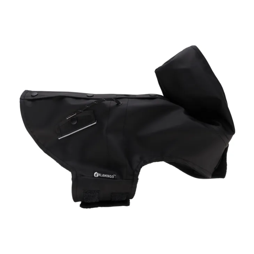 Flamingo Raincoat Toto Black е практичен и стилен дъждобран. Изработен от водоустойчива материя, той предпазва кучетата от дъжд и влага по време на разходки, като осигурява комфорт и защита.
