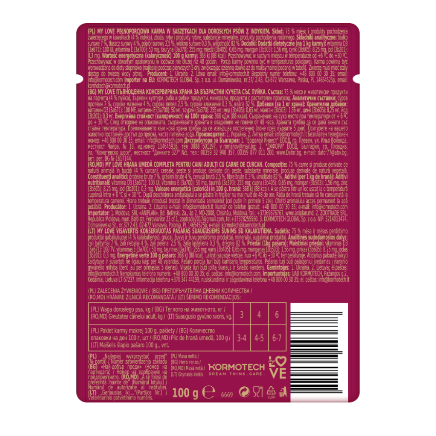 My Love пълноценна консервирана храна за възрастни кучета с пуешко месо, 0,1 кг