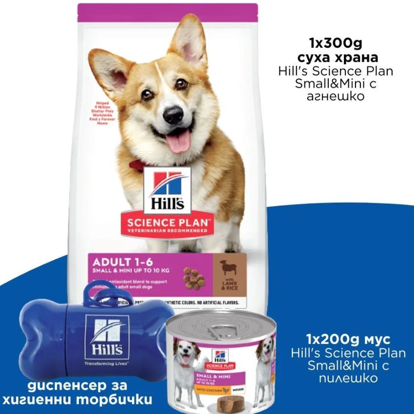 Храната Hill’s Science Plan Small & Mini Adult с агнешко и ориз е специално формулирана да задоволи специфичните нужди на кучетата от малки и мини породи (до 10кг) в разцвета на годините им от 1 до 6 години. Апетитен агнешки вкус за любителите на разнообразието и специално приготвена с най-малките гранули. Прецизно хранене за уникалните нужди на кучетата от малките породи. Съдържа специален микс от антиоксиданти за поддържане на имунитета. Без добавени изкуствени консерванти, овкусители.