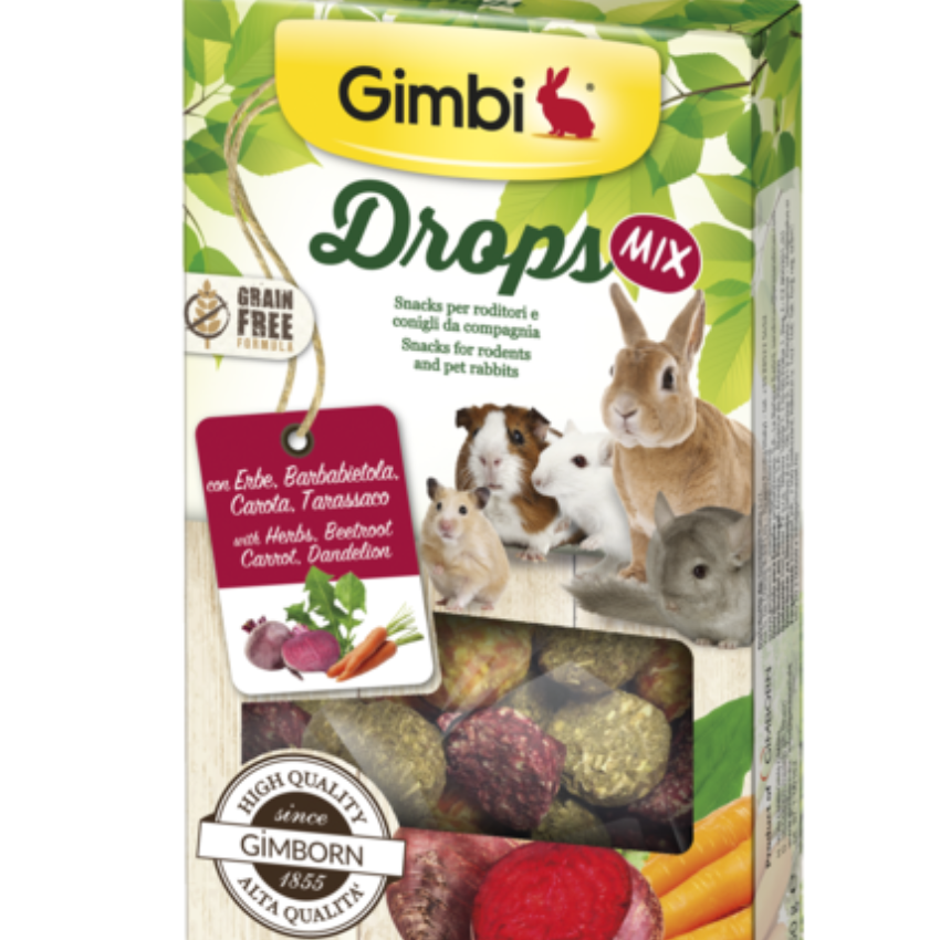GIMBI Drops Mix (Herbs, Beetroot, Carrot and Dandelion) – лакомство за гризачи, 50 гр.